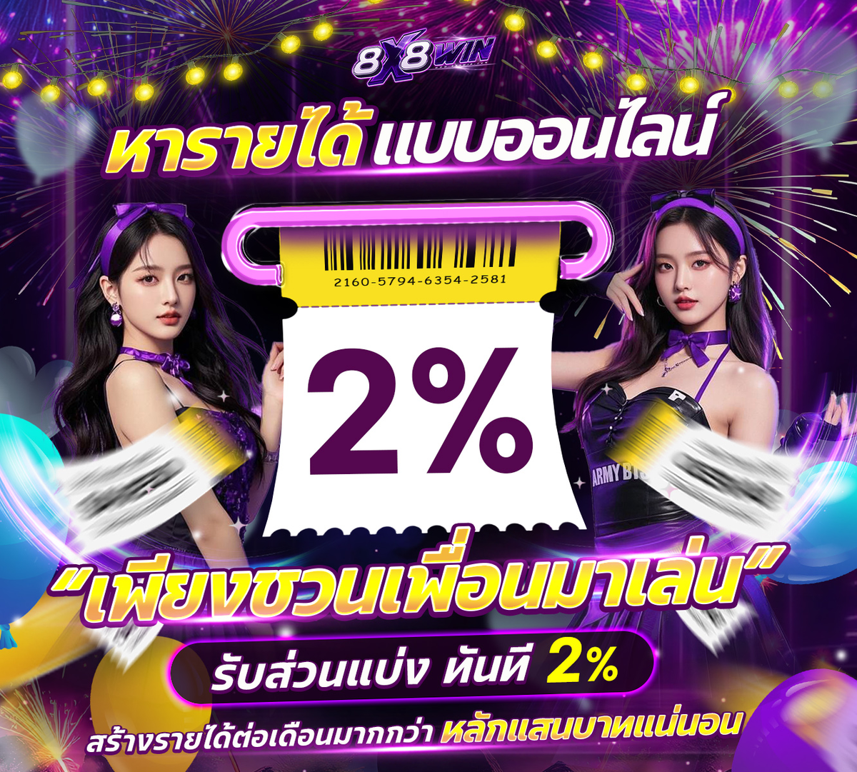 ชวนเพื่อนมาเล่นกับ 8X8WIN รับส่วนแบ่งทันที 2%